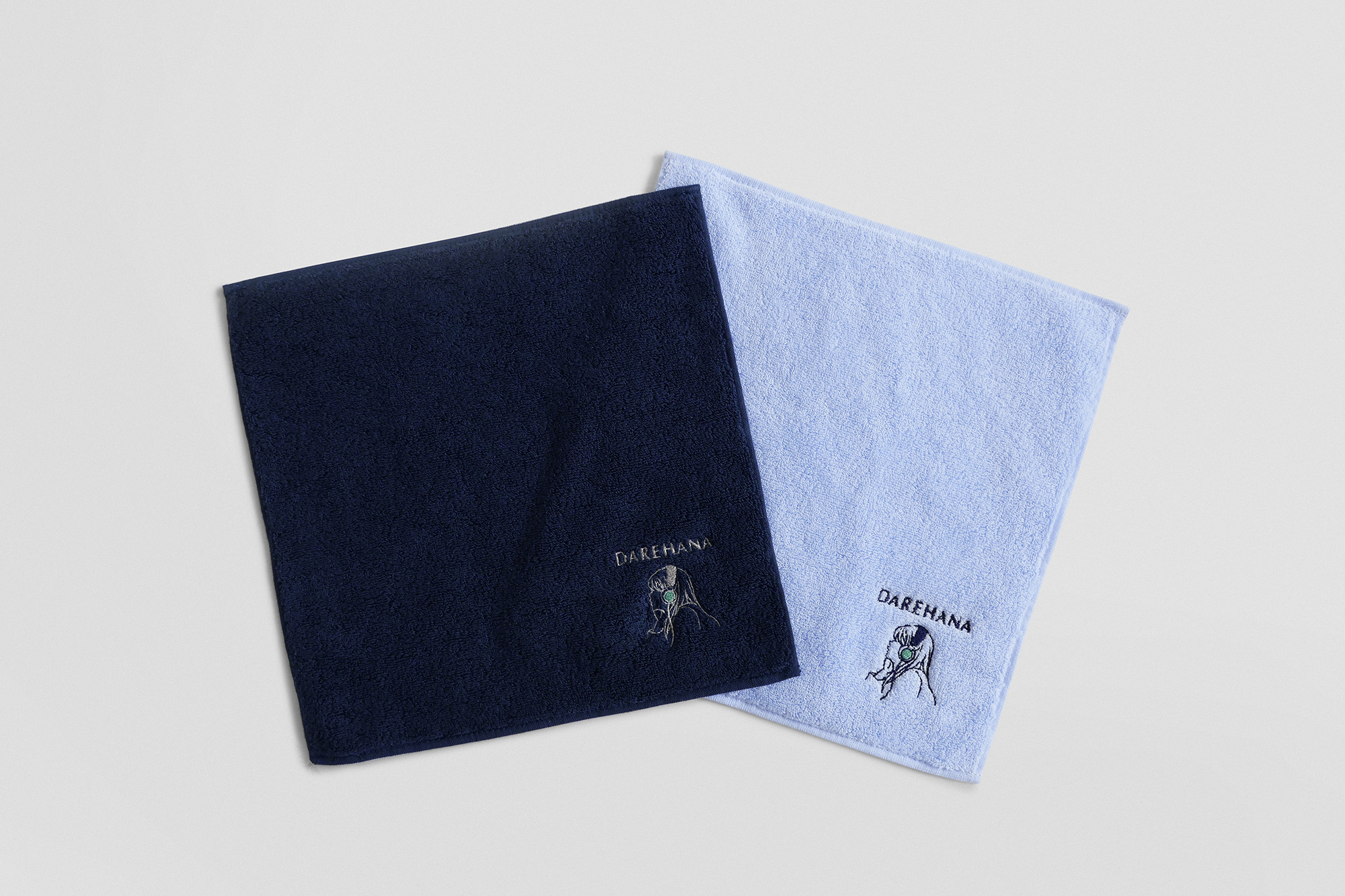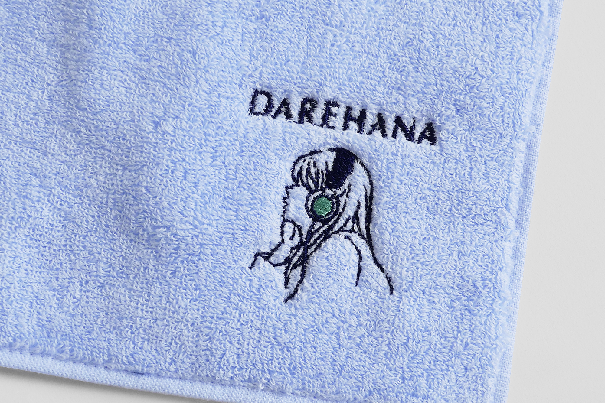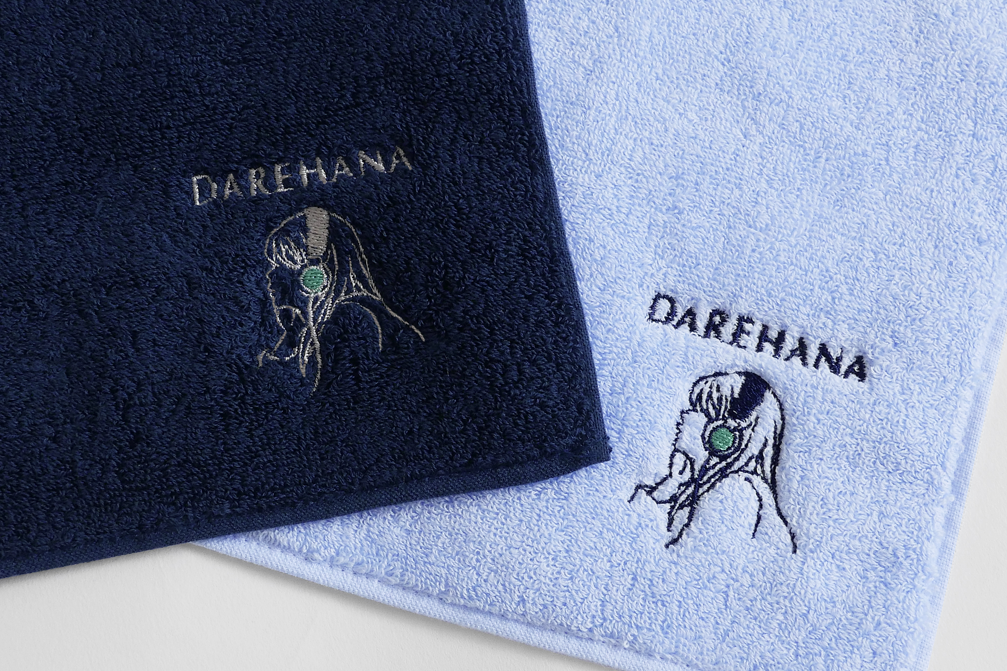 キービジュアルの山崎怜奈さんのイラストを刺繍したミニタオルです。ネイビーとライトブルーの2色展開です。素材は、コットン(100%)で、手触りもとても良く、使いやすいお色とあしらいなので、普段使いもかなりしやすい1枚になっています。 今治タオルブランド認証マークも付いています。